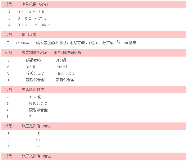 注:④ 絕對壓力變送器不能進行負遷移。