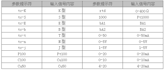 五、輸入信號類型表