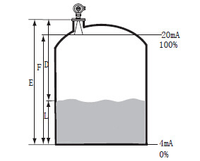 通過輸入空罐高度E(=零點(diǎn)),滿罐高度F(=滿量程)及一些應(yīng)用參數(shù)來設(shè)定,應(yīng)用參